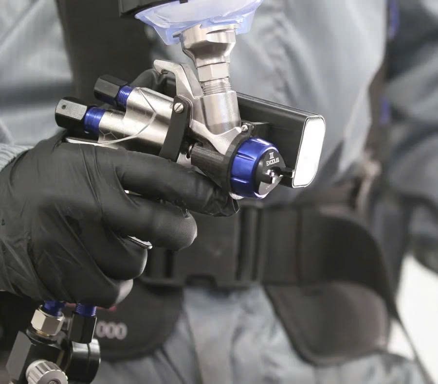 The EXODUS is available in a simplified system of color coat (silver air cap / 1.3 needle) and clear coat (black air cap / 1.5 needle) with HVLP or OP (Optimized Pressure) technology.